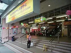 - Smithfield Municipal Services Building (士美非路市政大廈), located at 12K Smithfield. It houses the Smithfield Sports Centre,[3] Smithfield Market[4][5][6] and Smithfield Public Library.[7] The fourth floor houses a study corner for school students.[8] The entrances for the different activities are separated and the market is segregated from the library and the indoor games hall.[9]
