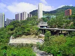 Until the mid-1990s, Smithfield was a dead end street at the top end with Wah Fai House (華輝大廈), Mei Wah Mansion (美華大廈) and Smithfield Garden (士美菲園), which are to the south of the Lung Wah Street junction, marking the end of the street. However, record of the Lands Department shows that Ho Chong (何莊; lit. "Farmstead of the Ho family"),[26] a Hotung ancestral family property[27][28] situated at the hillside beyond the top end of the street, is given the address of "40A Smithfield" and should thus be treated technically as the original top end of Smithfield.