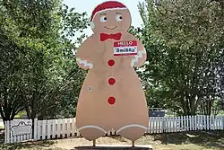On December 2, 2006, at the city's 16th Annual Festival of Lights, Smithville broke the Guinness World Record for the world's largest gingerbread man.[13] The record breaking "man" measured over 20 feet (6.1 m) long and weighed 1,308.5 lb (593.5 kilograms). Some of the ingredients used were 750 pounds of flour, 49 gallons of molasses and 72 dozen eggs. The pan used in the baking now stands as a monument at the James H. Long Railroad Park in Smithville. The record has since been broken by a Norwegian IKEA display.[14]
