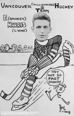![]() Smokey Harris with the 1913–14 Vancouver Millionaires. | |||
