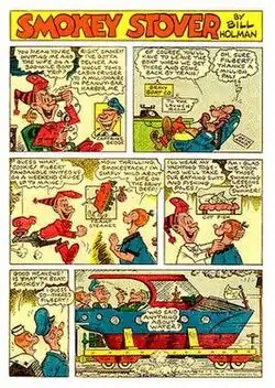 Smokey Stover is an American comic strip written and drawn by cartoonist Bill Holman from March 10, 1935, until he retired in 1972[1] and distributed through the Chicago Tribune. It features the misadventures of the titular fireman.