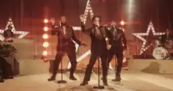 In the retro 70's retro "stylized like a vintage television performance" music video, the duo is wearing wide "old-school" lapel tuxedo jackets.[13][23][10] They perform a choreography on an old-school TV set, in which the stage is decorated with large light-up stars, alongside backup singers and a band.[13][15] During their performance .Paak and Mars are singing and smoking cigarettes. At one point, the former pretends to "drop dead mid-performance".[14]