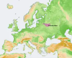 The Smolensk Upland (Russian: Смоленская возвышенность) is the Western part of the Smolensk–Moscow Upland at the East European Plain, which is located mainly in Smolensk Oblast of Russia, with small parts lying in Moscow and Kaluga Oblasts[1] of Russia and in Vitebsk Region of Belarus. The highest point, located close to the city of Vyazma, is 314 metres (1,030 ft).[2]