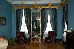 Smyser-Bair House was constructed during the 1830s. The house is notable for its historic preservation and ornate details. The structure of the building follows Victorian architecture. Smyser-Bair House was never converted into apartments or changed by large scale renovation.[21] As per York Daily Record, Smyser-Bair House stands mostly as it was seen in the late 19th century. The house retains many of the details that it became known in the 1800s and is recognized for its historical preservation.[1] Smyser-Bair House's ornate features include handcrafted pier mirrors covered with gold from Henry Smyser's California Gold Rush expedition. The expedition is demonstrated in an illustration in the main hall of the house.[22] Smyser-Bair House also houses Robert C. Bair's original Sunday school lesson books, complete with his handwritten notes. Bair's photograph collection is archived at the York County Historical Trust Library with a grant from the Pennsylvania Historical and Museum Commission. The photograph collection includes 721 photos from 1906 to 1928 including the photos of civil war veterans from the 1913 Gettysburg battlefield reunion.[15]