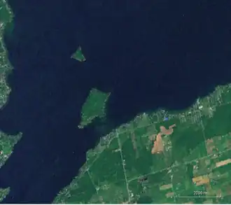 ![]() Snake Island (the larger of the two islands seen) in Lake Simcoe | |