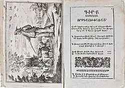 After 1783, Shahamirian was in periodic contact with King Heraclius II of Georgia, whom he saw as a potential ally for the realization of the Madras group's political goals.[23][24] Heraclius wrote to Shahamirian asking him to write a work to help improve the government of his realm.[25] In a letter dated to 15 October 1787, Shahamirian wrote to Heraclius saying that he was unable to fulfill his request, but instead sent him a manuscript copy of the second, draft constitution part of Snare of Glory, which had not yet been printed at that point.[26][27] Shahamirian also sent manuscript copies of the work prior to its publication to Catholicos Ghukas Karnetsi and Hovsep Arghutian, archbishop of the Armenians of Russia.[28] Snare of Glory was finally printed sometime between late 1787 and 1789.[27]