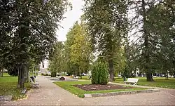 The Snellman Park (Finnish: Snellmaninpuisto) is the oldest park in the city of Kuopio, Finland, located at the Vahtivuori district in the city center between the Kauppakatu and Minna Canthin katu streets, in the adjacent block of Kuopio Cathedral.[1][2][3][4][5] The park covers an area of 1.4 hectares.[6] Today, the park and its surroundings are part of the larger Kuopio National City Park, established in late 2017.[7] The park is named after J. V. Snellman (1806–1881), the senator and the Fennoman, who influenced the affairs of the Grand Duchy from Kuopio, among other places.