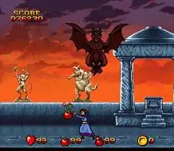 Fruit and stars can be collected while apples can be thrown at enemies and blocks.Players are given four continues to stop the evil Maliss. At the final stage, either Snow White or the Shadow Man confronts Maliss in his ultimate dragon form. Players can change the difficulty level (ranging from easy to medium to hard) if the game gets too frustrating for them. A vast array of continues allow players to restart failed games.