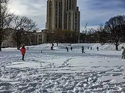 On December 9, 2009, an estimated crowd of over 4,000 students at the University of Wisconsin–Madison participated in a snowball fight on Bascom Hill. There were reports of several injuries, mainly broken noses, and some vandalism, mainly stolen lunch trays from Memorial Union. The snowball fight was scheduled weeks in advance, and was helped by the fact that the University canceled all classes due to 12–16 inches of snow that fell the night before.[11] However, this snowball fight failed to break the record set in October of the same year in Leuven.