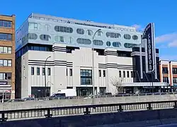 The Snowdon Theatre was a Streamline Moderne style cinema in Montreal, Quebec, Canada, located on Decarie Boulevard in the neighbourhood of Snowdon. For 45 years it operated as a movie theater for films. After the theater closed, it was re-purposed as mini-shopping center with gymnastics studio, the latter of which had preserved former theater's lavish art deco interior. In 2019, following years of abandonment and neglect, it was demolished, with only its exterior facade left (heavily modified) as a decorative front for newly constructed condominiums.