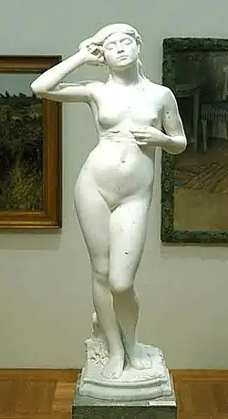 Snowdrop (Swedish: Snöklockan; French: La Perce-Neige) is a standing female nude in plaster, sculpted by Per Hasselberg in 1881. It is named after the snowdrop flower at the woman's feet, although the title also refers to its young, innocent subject stepping out of childhood and into womanhood - Hasselberg used a sixteen-year-old Italian girl as a model for the work