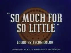 So Much for So Little is a 1949 American animated short documentary film directed by Chuck Jones and Friz Freleng.[2] In 1950, it won an Oscar at the 22nd Academy Awards for Documentary Short Subject, tying with A Chance to Live.[3][4] It was created by Warner Bros. Cartoons for the United States Public Health Service. As a work of the United States Government, the film is in the public domain. The Academy Film Archive preserved So Much for So Little in 2005.[5] Produced during the Harry S. Truman administration, it attained renewed relevance during the modern Medicare for All movement in the United States, nearly seven decades later.[6]