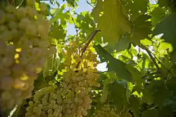 Only white wine is produced in the Soave region, and a minimum of 70% must be the Garganega grape. For Soave DOC wine, up to 30% of the blend can come from Trebbiano di Soave, also known as Verdicchio and Nestrano. This grape is distinct from the lower quality Trebbiano toscano variety of Tuscany (also known as the Ugni blanc grape used in Cognac production).[6] The DOC rules place new emphasis on the quality varieties and exclude Trebbiano toscano, which had been allowed to constitute up to 15% of the blend. All the grapes used for the DOC wine must be harvested to a yield no greater than 14 tonnes/hectare with the finished wine fermented to a minimum alcohol level of at least 10.5%.[3]