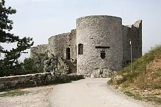Due to damage caused by a fire caused by lightning in 1780, the castle fell into ruins in the early 19th century. What remained of the castle was purchased in 1907 by the Baron of Trieste, Demetrio Economo, who renovated it in 1925, repairing the surrounding wall and removing the other ruins.[1] In World War II, during the period of the liberation struggle, thanks to its strategic position, it was used as a headquarters first by the German army and then by the partisan militias after their conquest in the autumn of 1944. After the war, it was renovated again and assumed historical and touristic importance.