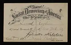 While the SDA was being organized, there was some factional trouble within the older Socialist Labor Party (SLP). Some elements within the SLPs Jewish membership, concentrated in Manhattans Lower East Side, had objected to the party's dual unionism policy. As a consequence, the party's Yiddish language papers—the Dos Abend Blatt and Arbeter-Zeitung—were put under direct party control.[6] When the dissidents responded by launching The Jewish Daily Forward and forming Press Clubs to influence party activity among Jewish members, the party leadership expelled the fourth, fifth and twelfth assembly district branches on July 4. The expelled branches held a convention July 31 to August 2, at which they decided to affiliate with the SDA.[7][8] Among the prominent members of this faction were Abraham Cahan, Meyer London, Isaac Hourwich, Morris Winchevsky, Michael Zametkin, Max Pine and Louis E. Miller.[9]