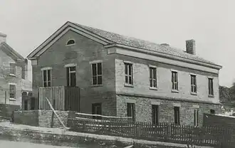 The Social Hall was constructed in 1852,[1] with some finishing touches continuing into spring 1853.[12] It was dedicated by church apostle Amasa Lyman on January 1, 1853. The ceremony, attended by nearly 400 persons, also included an address given by James Ferguson, musical performances, and dancing; lasting for most of the day, the festivities were closed with a benediction by Jedediah M. Grant.[13] The first theatricals were held on January 17,[12] with performances of Don César de Bazan and The Irish Lion.[1]