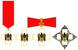 - Special class: a four-rayed breast star with the badge worn from a sash over the right shoulder