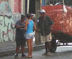 Social apartheid is tied to the exclusion of poor youth (particularly street youth) from Brazilian society.[13] Some political theorists assert the role of the police in keeping the inhabitants of Brazil's many favelas from encroaching on the lives of middle- and upper-class Brazilians is key to maintaining this state of apartheid.[14]