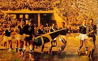 That same year, the Brazilian Sports Federation (CBD) used the entire Palmeiras roster to inaugurate the Mineirão Stadium and represent Brazil in an official national team match against Uruguay for the Inconfidência Cup. The day that it donned the green and white, Palmeiras as Brazil was victorious 3–0 over the Uruguayan blue.