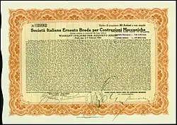 Società Italiana Ernesto Breda (lit. 'Ernesto Breda Italian Society'), more usually referred to simply as Breda, was an Italian mechanical manufacturing company founded by Ernesto Breda in Milan in 1886.