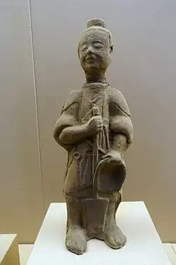 There were many amusements in the cities which could attract audiences rich and poor, such as trained animals performing tricks, cockfighting and caged animal fights between tigers, horse racing, puppet shows, musical performances with dancing, acrobatic feats, and juggling.[131] Wealthy families could afford their own house choirs and five-piece orchestras with bells, drums, flutes, and stringed instruments.[132] Gambling and board games such as liubo also provided entertainment.[133]