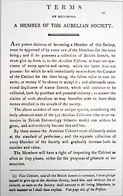 - 1801 saw a third Aurelian Society founded by Adrian Haworth who also established a set of stringent terms for member. It survived until April, 1806, with only ten members and little growth, when it was dissolved.[1]