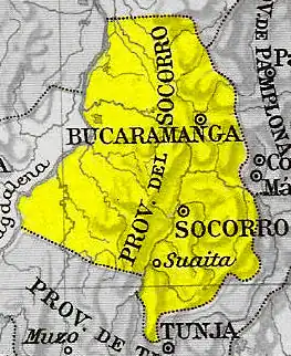 Socorro Province was one of the provinces of Gran Colombia. It belonged to the Boyacá Department which was created in 1824.
