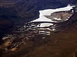 Soda Lake is a shallow, ephemeral, alkaline endorheic lake in the Carrizo Plain in southeastern San Luis Obispo County, California. The lake is located on the southwest side of the northern Carrizo Plain, 103 km (64 mi) east of San Luis Obispo. It can be reached by Soda Lake Road, which runs northwest–southeast between State Route 166 and State Route 58. The lake is at an elevation of 580 m (1,900 ft) and covers an area of about 12 km2 (4.6 sq mi).