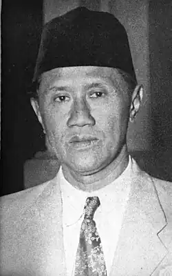 Soekiman attempted to defend the rights of around 900 PSII members laid off by a colonial government-owned pawnbroking network and succeeded in lobbying for severance pay and secured priority for the employees to be rehired. However, he did not consult PSII's senior leaders such as H.O.S. Tjokroaminoto and Agus Salim before his efforts. This was used as the reason for his expulsion from the party in March 1933.[15] Soekiman had longstanding disagreements with PSII's noncooperative stance with the colonial government, and after he was expelled he formed the Partij Politiek Islam Indonesia (PARTII) with Muhammadiyah's support.[1][16] PARTII failed to garner popular support, however, and was disbanded before long.[1][17] Following Tjokroaminoto's death, Soekiman briefly rejoined PSII in 1937, before leaving in 1938 and founding another political party, the Indonesian Islamic Party (PII).[1][18] He took part in the founding of Majelis Islam A'la Indonesia (Indonesian Islamic Assembly, MIAI) which was intended to serve as a federation of various Islamic organizations.[19][20] Along with his brother Satiman, Soekiman also initiated the formation of an Islamic higher education institute, establishing several pilot projects in 1939 and 1940 before the Japanese invasion of the Dutch East Indies interrupted their growth.[21]
