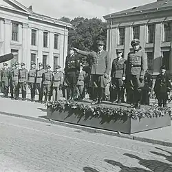 In August 1946, the Border Club (Gränseklubben) was established, bringing together Swedish and Norwegian members of their wartime resistance group. August described the club's significance: "We agreed to somehow preserve the memory of our joint activities in the Norwegian resistance movement during the years of unrest. To this end, an association was formed with Swedish and Norwegian members."[18] At the first gathering, Sofia received King Haakon VII's Freedom Cross, while August received the Order of St. Olav.[7][19][6] Sofia noted that many of their Norwegian resistance colleagues went on to distinguished careers: "Of the Norwegians in our group, one became ambassador to India, one was an editor and two were teachers."[6]