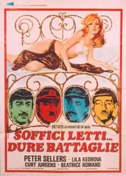 Soft Beds, Hard Battles is a 1974 British comedy film directed by Roy Boulting, starring Peter Sellers (in several roles), Curd Jürgens, Lila Kedrova and Jenny Hanley. Sellers reunited with the Boulting brothers for this farce, in which the women of a brothel help the war effort to rid the world of the Nazi peril – in the bedroom.[3]