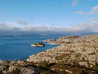 Sognesjøen is a strait in Vestland county, Norway. The strait is the outermost part of the large Sognefjorden. It runs along the border between Solund and Gulen municipalities. The 35-kilometre (22 mi) long strait begins around the village of Rutledal on the mainland of Gulen at the mouth of the Sognefjorden. The strait then flows in a southwesterly direction into the North Sea, just north of the island municipality of Fedje (in Hordaland county). The Sognesjøen is surrounded by many large and small islands. The islands of Sula, Steinsundøyna, Ytre Sula lie along the northern side of the strait. The mainland and the islands of Hiserøyna, Hille, Kversøyna, and Byrknesøyna lie along the southern side of the strait.[1]