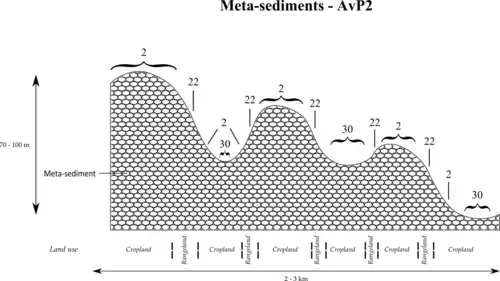 Soil degradation in this district became important when humans started deforestation almost 5000 years ago.[7][8] Depending on land use history, locations have been exposed in varying degrees to such land degradation.