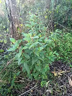 Solanum stelligerum, the star nightshade or devil's needles, is a species of flowering plant in the family Solanaceae, native to eastern Australia.[1] A woody shrub reaching 2 m (7 ft), it is typically found growing on sand dunes, in open Eucalyptus woodlands, and on forest edges.[2] The small red fruit are eaten by Aboriginal Australians, but it is recommended to only consume low quantities.[2]
