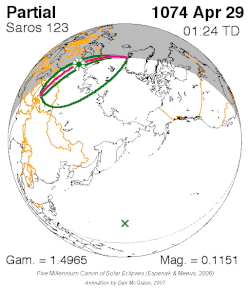 | 123 | 1 | April 29, 1074 | 1:23:46 | Partial | 62.2N 39.8E | 1.4965 | 0.1151 | [1] | ||