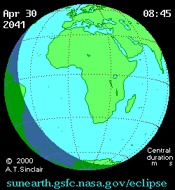 - ^ "Total Solar Eclipse on April 30, 2041: Path Map & Times". timeanddate.com. Retrieved 26 June 2024.