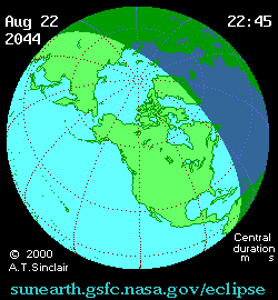 - ^ "Total Solar Eclipse on August 22–23, 2044: Path Map and Times". www.timeanddate.com. Retrieved 2024-03-23.
