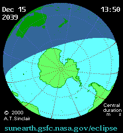 - ^ "Path of Total Solar Eclipse of 2039 Dec 15". NASA Goddard Space Flight Center Eclipse Website. NASA. Retrieved 9 September 2017.
