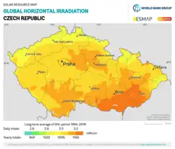 ![]() Solar irradiation map of Czech Republic | |