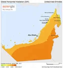 - ^ "Total installed capacity of solar energy across the United Arab Emirates from 2014 to 2022". Statista. 2023-11-15. Retrieved 2024-04-07.