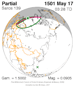 | 139 | 1 | May 17, 1501 | 3:27:44 | Partial | 63.7N 13.6W | 1.5002 | 0.0905 | [1] | t- | 0 | ||