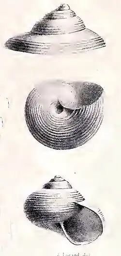 | Original drawing with three views of a shell of Solariella cingulima | |