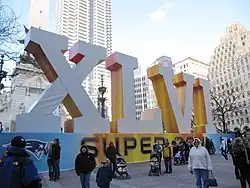 View of the monument from the southwest, with the Salesforce Tower in the background. -