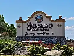 Soledad (Spanish for "Solitude") is a city in Monterey County, California, United States. It is in the Salinas Valley, 21 miles (34 km) southeast of Salinas, the county seat.[6][8] Soledad's population was 24,925 at the 2020 census,[7] down from 25,738 in 2010. Soledad's origins started with Mission Nuestra Señora de la Soledad, founded by the Spanish in 1791, under the leadership of Fermín de Lasuén. Catalina Munrás began developing the town of Soledad on her Rancho San Vicente in the 1860s, which eventually incorporated as a city in 1921. Today, Soledad is a notable tourist destination, owing to the heavily restored mission, its proximity to Pinnacles National Park, and its numerous vineyards, as part of the Monterey wine region.