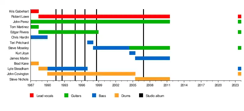 - John Perez – guitars (1987–2011, 2023–present)