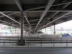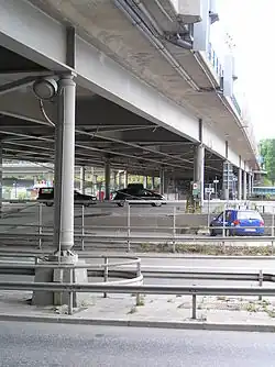 Solnabron (Swedish: "The Solna Bridge") was a viaduct in Sweden. Spanning the Norra Station area and the Norra länken motorway, it linked the municipalities of Stockholm and Solna. Solnabron was torn down in 2011[1] as part of large-scale redevelopment of the area into Hagastaden. For a couple of years, it was replaced by a temporary bridge made largely from wood, before finally being replaced with a permanent overbuild.[2] The stretch is now simply designated as Solnavägen ("Solna Road") instead of Solnabron.[3]