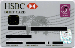 Solo was issued as a multifunction cash card by NatWest and the Royal Bank of Scotland to customers over the age of 11 and by HSBC Bank (formerly Midland Bank) to customers over the age of 13; however, NatWest Group and HSBC both then issued Visa Debit cards in place of Solo.[4] Like its main rival, Visa Electron, Solo cards required all transactions receive electronic authorisation from the issuing bank.