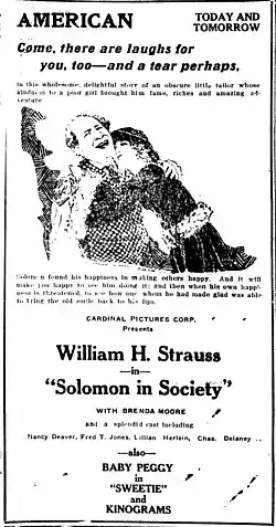 Solomon in Society is a 1922 American silent drama film directed by Lawrence C. Windom and starring Charles Delaney and Lillian Herlein.[1]