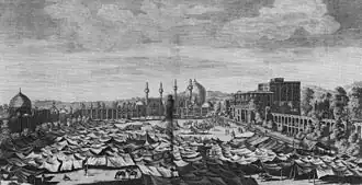 The shah was urged to escape to the provinces to raise more troops but he decided to remain in the capital which was now encircled by the Afghans.[23] Mahmud's siege of Isfahan lasted from March to October, 1722. Lacking artillery, he was forced to resort to a long blockade in the hope of starving the Iranians into submission.[24] Soltan Hoseyn's command during the siege displayed his customary lack of decisiveness and the loyalty of his provincial governors wavered in the face of such incompetence.[25] Protests against his rule also broke out within Isfahan and the shah's son, Tahmasp, was eventually elevated to the role of co-ruler. In June, Tahmasp managed to escape from the city in a bid to raise a relief force in the provinces, but little came of this plan.[26] Starvation and disease finally forced Isfahan into submission. It is believed that over 80,000 of the inhabitants of the city died during the siege. On 23 October, Soltan Hoseyn abdicated and acknowledged Mahmud as the new shah of Iran.[27]