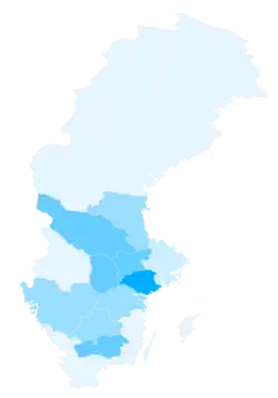 >1.5% (Södermanland) 1–1.5% 0.75–0.99% 0.5–0.74% <0.5% | |